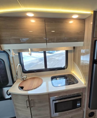 Superbe motorisé Classe B+ sur châssis Mercedes-Benz Sprinter, reconnu pour sa qualité de fabrication et sa conduite confortable.