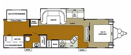 Roulotte Wildwood 322 CNK — très propre et bien équipée : Extension (slide-out) pour plus d’espace Lits superposés Chambre fermée à l’avant Chambre fermée à l’arrière pour les enfants Grande banquette Roulotte tout équipée Très propre et en excellente condition Grand auvent