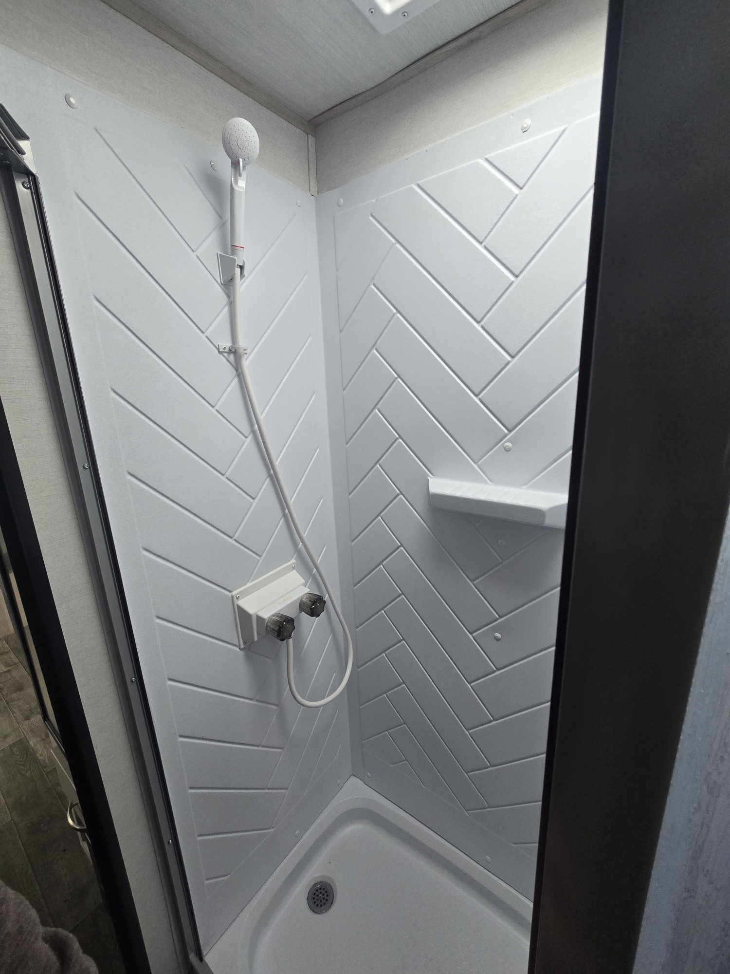 Douche avec rideau et entourage -